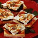 4 - Posez une tranche de fromage, une tranche d'aubergine et un peu de sauce sur chaque tranche de pain de mie.
