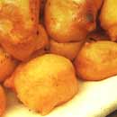 7 - Prenez doucement, avec une cuillère, une rondelle de pomme enduite de pâte et introduisez-la dans l'huile bouillante en la faisant glisser de la cuillère vers l'huile grace à une autre cuillère.