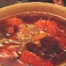 5 - Egouttez les viandes et coupez-les en morceaux. Remettez-les dans le bouillon, ajoutez la betterave râpée et le vinaigre. Servez très chaud avec de la crème fraîche, présentée en saucière.